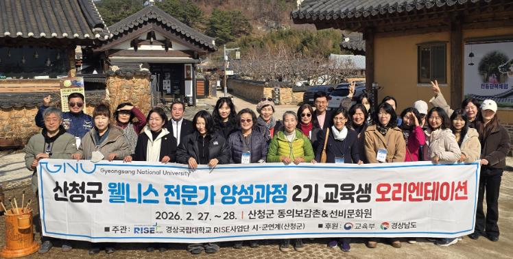 [뉴스앤톡] 경상국립대학교 경남 라이즈(RISE) 사업의 하나로 운영되는 ‘웰니스 전문가 양성과정 2기’가 2월 27~28일 산청군 일원에서 오리엔테이션을 개최하며 힘찬 출발을 알렸다.