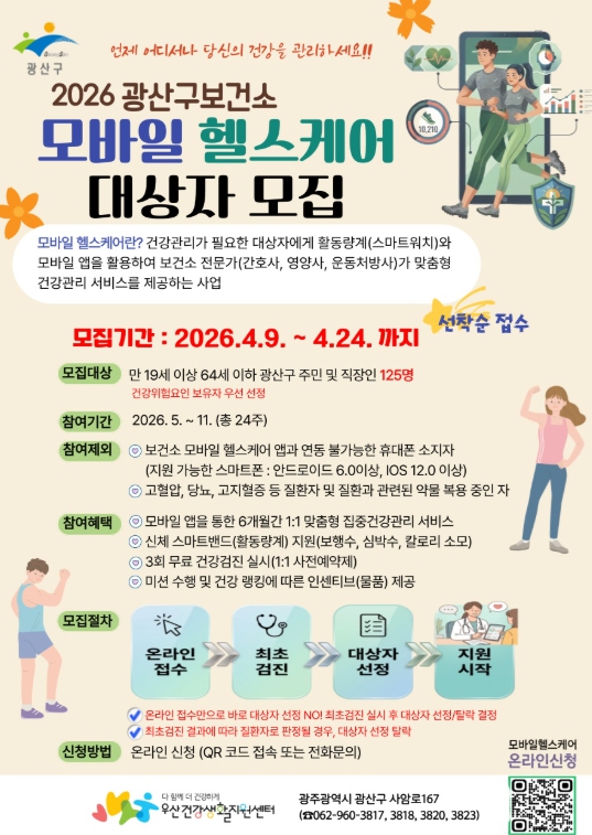 [뉴스앤톡] 광주 광산구는 정보통신기술(ICT)을 활용해 주민들의 건강을 챙기는 ‘2026년 모바일 헬스케어’ 사업을 본격적으로 운영한다고 밝혔다.