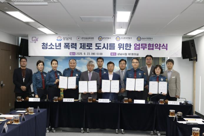 협약식은 9월 23일 성남시청에서 진행됐으며, 기관별 역할과 실질적인 협업 방안을 담은 협약을 체결하고 공동 대응 체계를 본격 가동하게 된다. 이어 오는 9월 30일 오후 1시 30분, 성남아트센터 오페라하우스에서 '청소년 폭력제로도시 선포식'이 개최될 예정이다.