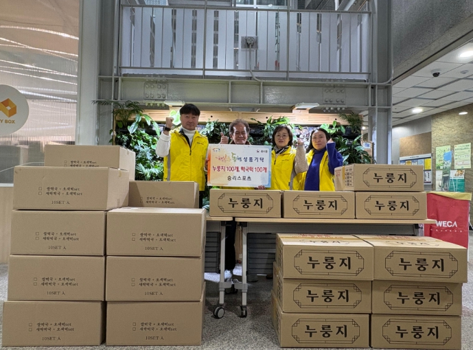 [뉴스앤톡] 이천시 중리동행정복지센터는 지난 1월 14일, 승리스포츠가 관내 취약계층을 위해 누룽지 100개와 떡국떡 100개를 기탁했다고 밝혔다.
