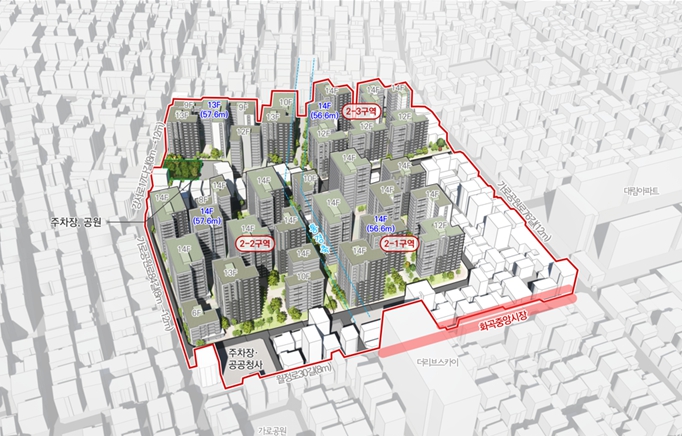 이번 계획은 효율적인 토지이용과 인접 개발계획과 연계를 위해 용도지역을 제2종·제2종(7층이하)일반주거지역에서 제3종일반주거지역으로 상향했다.
