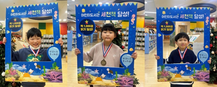 이번 완독의 영예를 안은 어린이는 104호 이재상, 105호 송지아, 106호 나유찬 어린이로, 도서관은 이들의 성취를 축하하기 위해 인증서와 메달을 수여하는 기념식을 진행했다.