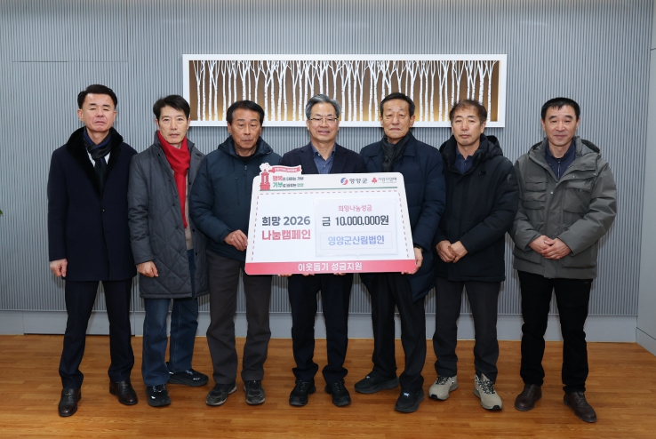 [뉴스앤톡] 영양군 관내 산림사업 법인 6개사가 1월 26일 영양군청을 합동 방문해, 어려운 이웃을 위한 '희망2026나눔캠페인' 성금 1,000만원을 전달하며 지역사회에 훈훈한 감동을 전했다.