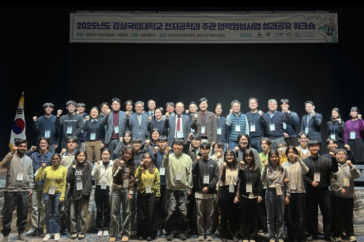 [뉴스앤톡] 경상국립대학교 ICT혁신인재사업단과 S2X인공지능기반유무인복합체계교육연구단(이하 BK21 STAR사업단)(양 사업단 단장 이왕상 전자공학부 교수)은 12월 5~6일 쏠비치 남해에서 ‘2025년도 경상국립대학교 전자공학과 주관 인력양성사업 성과공유 워크숍’을 개최했다.