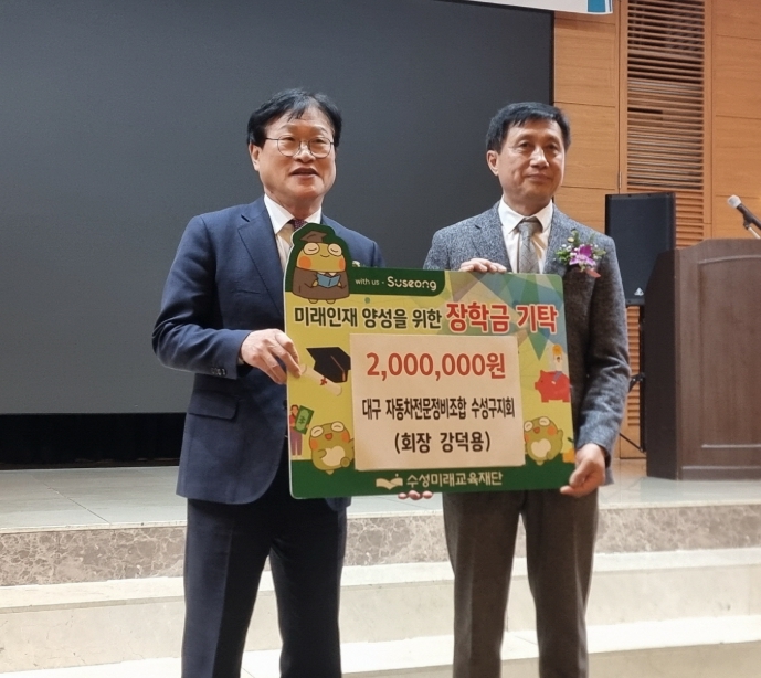 [뉴스앤톡] 대구자동차전문정비사업조합 수성구지회(회장 강덕용)는 지난 22일 호텔 라온제나에서 2026년 신년회를 개최하고, 지역 교육 발전을 위해 장학금 200만 원을 수성미래교육재단에 기탁했다.