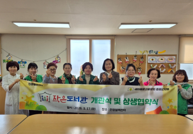 [뉴스앤톡] 새마을문고중앙회 증평군지부(회장 강미영)가 17일 인성실버센터에서 ‘새마을문고 작은도서관’개관식과 상생 협약식을 개최했다.