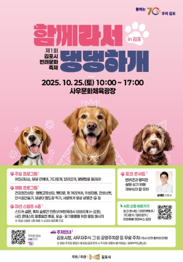 [뉴스앤톡] 김포시는 반려동물과 시민이 함께하는 문화의 장인 제1회 김포시 반려문화축제 '함께라서 댕댕하개 in 김포'가 오는 10월 25일 사우문화체육광장(사우동)에서 개최된다고 밝혔다.