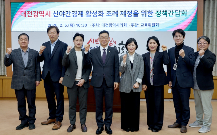 [뉴스앤톡] 대전시의회는 5일 시의회 소통실에서 ‘대전광역시 신야간경제 활성화 조례 제정을 위한 정책간담회’를 개최했다.