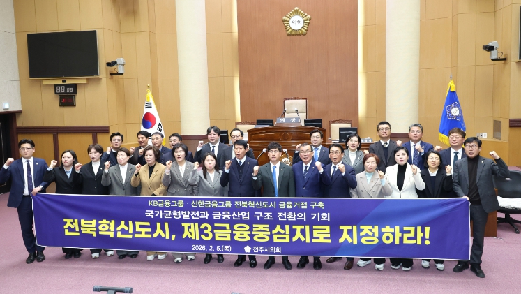 이에 전주시의회는 ▲전북혁신도시의 금융중심지 조속 지정 ▲서울·부산 금융중심지와의 기능적 분업·연계 구조 구축 ▲금융기관 집적과 전문 인력 양성 등 국가 차원의 종합 지원 체계 마련을 촉구했다.