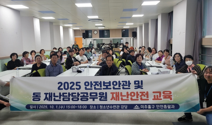 [뉴스앤톡] 인천 미추홀구는 지난 1일 미추홀구청소년수련관에서 안전 보안관 및 동 재난 담당 공무원을 대상으로 ‘재난 안전교육’을 실시했다.