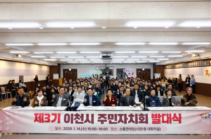 [뉴스앤톡] 이천시는 지난 14일 시청 소통큰마당에서 제3기 이천시 주민자치회 발대식을 개최했다. 김경희 이천시장, 박명서 이천시의회 의장 및 시의원을 비롯하여 제3기 주민자치회 위원 140여 명이 참석한 이번 행사로 제3기 주민자치회의 출범을 알리고 본격적인 활동의 시작을 함께 축하했다.