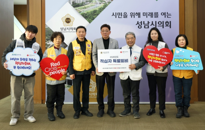 [뉴스앤톡] 성남시의회는 19일 의장실에서 대한적십자사 경기도지사에 2026년 적십자 특별회비 150만원을 전달했다. 이날 전달식은 회비 판넬 전달과 함께 참석자 간 차담을 나누는 자리로 마련됐다.