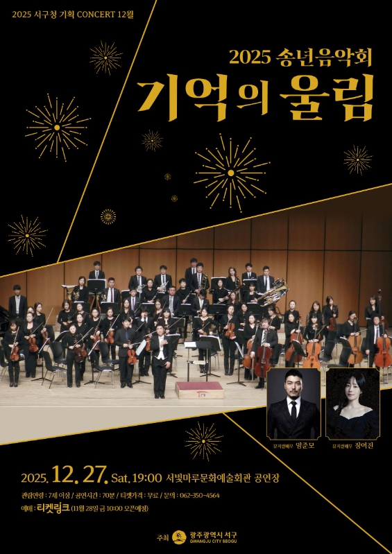 [뉴스앤톡] 광주광역시 서구는 2025년 한 해를 마무리하며 오는 27일 오후7시 서빛마루문화예술회관에서 송년음악회 ‘기억의 울림’을 개최한다.