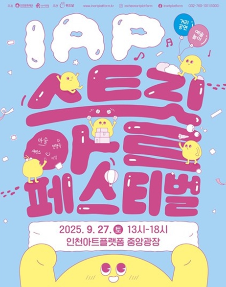 [뉴스앤톡] (재)인천문화재단-인천아트플랫폼은 9월 27일 13:00~18:00 인천아트플랫폼 중앙광장에서 거리공연과 예술놀이 프로그램으로 구성된 거리예술 축제 'IAP 스트릿 아트 페스티벌'을 개최한다.