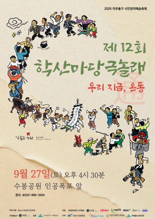 [뉴스앤톡] 인천 미추홀학산문화원이 주관하는 제12회 미추홀구 시민 창작 예술축제 ‘학산마당극 놀래’가 오는 27일 오후 4시 30분, 수봉공원 인공폭포 마당에서 개최된다.