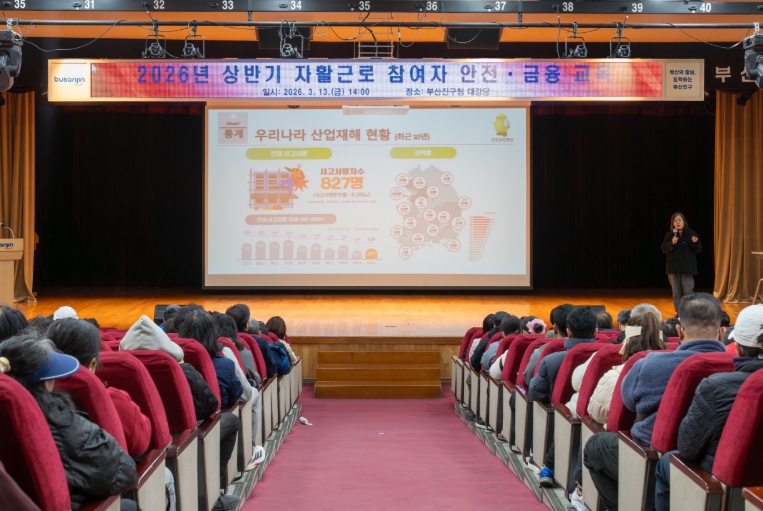 [뉴스앤톡] 부산진구는 지난 3월 13일 부산진구청 대강당에서 자활근로자를 대상으로 안전·금융교육을 실시했다고 밝혔다.