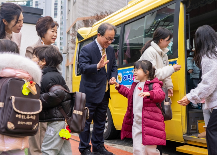 김석준 교육감은 3일 오전 동래구 소재 유치원을 방문해, 새학기 차질없는 무상교육 진행상황을 점검하고 교육현장 의견도 청취했다.