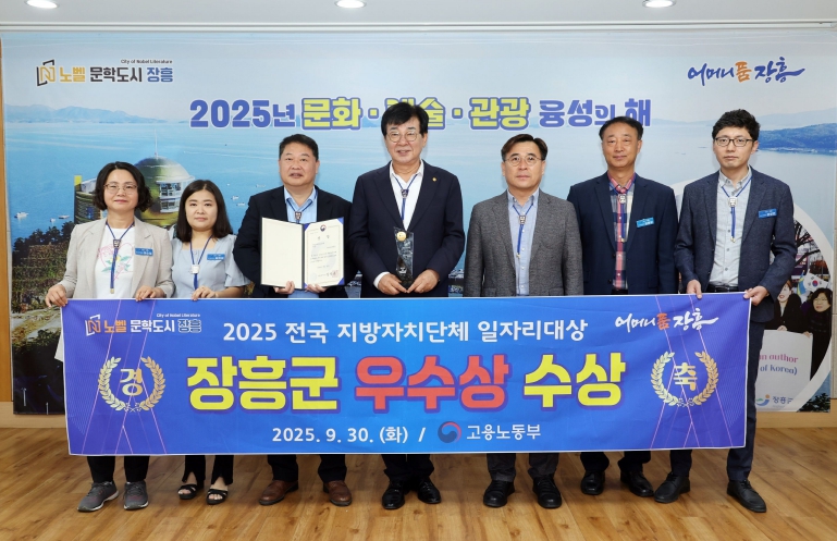 [뉴스앤톡] 장흥군이 지난 30일 충북 청주 오스코에서 열린 고용노동부 주관 ‘2025 전국지방자치단체 일자리대상’에서 공시제 분야 우수상을 수상했다.