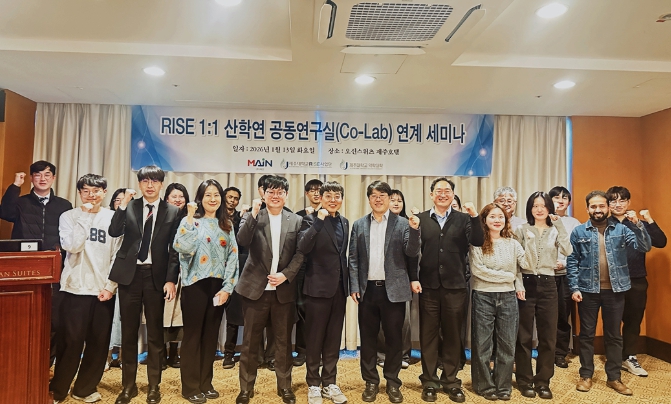 [뉴스앤톡] 지역과 대학의 동반 성장을 목표로 제주 RISE사업에 참여하고 있는 제주대학교 RISE사업단(이하 ‘사업단’) 미래전략3팀의 ‘1:1 산학연 공동연구실 Co-Lab 구축’ 프로그램의 ‘제주대학교 약학대학 약제학 연구실(생체이용률조절연구실)’은 ㈜메인과 지난 1월 13일, 약학 및 바이오·헬스케어 분야 연구 협력 강화를 위한 업무협약(MOU)를 체결하고 사업단의 1:1 산학연 공동연구실 Co-Lab 연계 공동 세미나를 개최했다고 밝혔다.