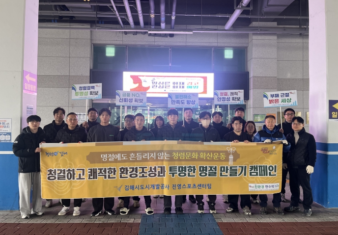 [뉴스앤톡] 김해시도시개발공사 진영스포츠센터는 설 명절을 앞두고 센터 인근 주천강 일대에서 환경정화 활동과 청렴문화 확산 캠페인을 전개했다고 11일 밝혔다.