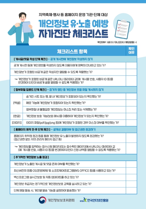 개인정보위는 지방자치단체 및 축제 운영 기관에 각별한 주의를 당부하며, 안전한 홈페이지 운영을 위한 자가점검표를 마련해 배포할 계획이다.