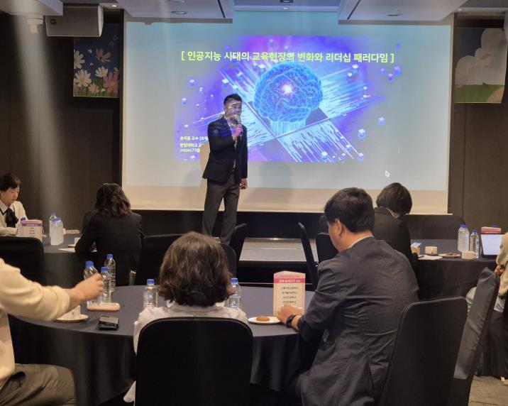 이 날 워크숍에서는 1부 송지훈 석학교수(한양대 교육공학과)를 초청하여 ‘AI 시대 교육의 변화와 리더십’을 주제로 빠르게 변화하는 교육환경 속에서 디지털 리터러시의 중요성과 교육의 방향성을 탐색하는 시간을 가졌다. 이번 특강은 학교 관리자의 미래 교육 리더십 역량을 강화하는 계기가 됐으며, 디지털 교육의 현장 적용 방안과 리더십 사례 공유를 통해 교(원)감의 궁금증을 해소했다.