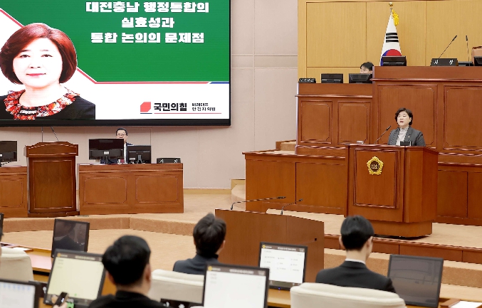 [뉴스앤톡] 대전시의회 행정자치위원회 안경자 의원(국민의힘, 비례대표)이 2일 열린 제292회 임시회 제3차 본회의에서 5분 자유발언을 통해 대전·충남 행정통합의 실효성과 논의 과정의 문제점을 지적했다.