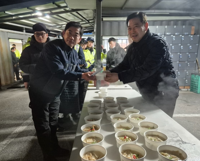 [뉴스앤톡] 대구 남구의 조재구 남구청장이 병오년 새해 첫날 새벽, 앞산 큰골에 위치한 환경공무직 근무 현장을 찾아 이른 새벽부터 근무에 나선 환경공무직 직원들을 직접 만나 새해 덕담을 전하고, 떡국 한 그릇을 함께 나누며 감사의 마음을 전했다.