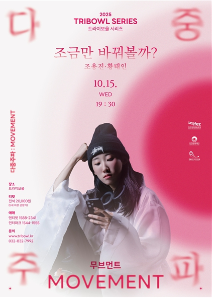 [뉴스앤톡] (재)인천문화재단이 운영하는 트라이보울은 오는 10월 15일 오후 7시 30분, 2025 트라이보울 시리즈 '다중주파: 무브먼트'의 첫 무대로 한국무용수 조용진·황태인의 공동 안무작 '조금만 바꿔볼까?'를 선보인다.