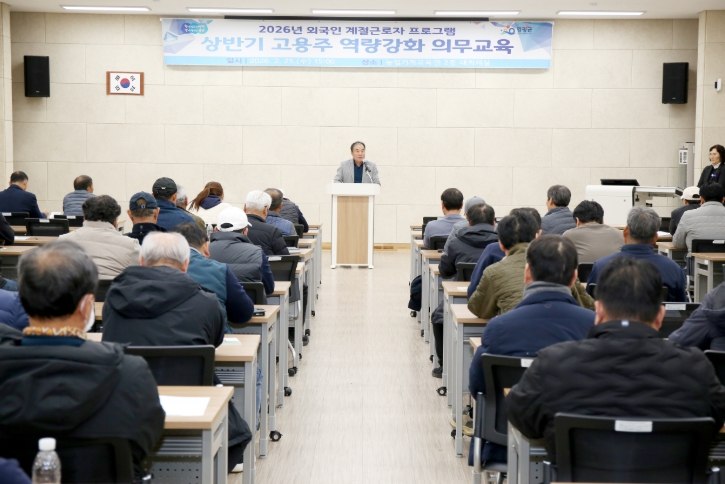 [뉴스앤톡] 영광군은 지난 25일 영광군 농업기계교육관 2층 대강의실에서 2026년 외국인 계절근로자 프로그램 고용주들을 대상으로 의무교육을 실시했다고 밝혔다.