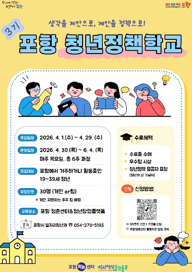 [뉴스앤톡] 포항시가 오는 4월 29일까지 ‘2026년 포항 청년정책학교’ 참여자를 모집한다.