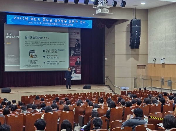 [뉴스앤톡] 세종특별자치시교육청은 11월 6일에 세종시교육청교육원 대강당에서 각급학교 및 직속기관의 업무담당자를 대상으로 ‘공무원 급여 연수’, ‘중증장애인생산품 우선구매 교육’, ‘학교장터(S2B) 계약 연수’를 실시했다.
