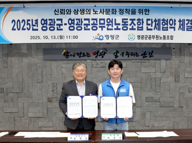 [뉴스앤톡] 영광군은 지난 10월 13일 군청 2층 소회의실에서 영광군공무원노동조합과 “2025년 단체협약식”을 체결했다.