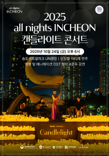 [뉴스앤톡] 인천광역시와 인천관광공사는 문화체육관광부 국비 공모사업인‘야간관광 특화도시 조성사업’의 일환으로‘2025 all nights INCHEON 캔들라이트 콘서트’를 24일 오후 6시, 송도센트럴파크 UN 광장에서 개최한다고 밝혔다.