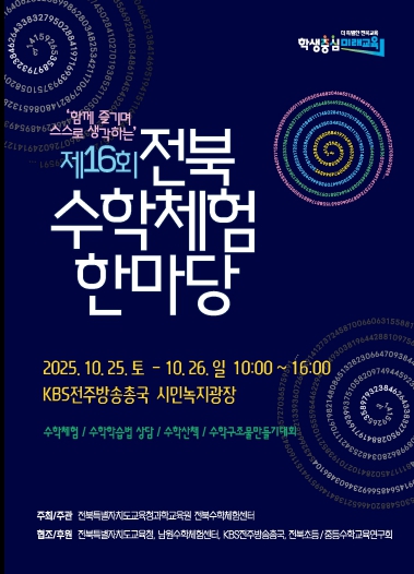 [뉴스앤톡] 전북특별자치도교육청과학교육원은 오는 25~26일 KBS전주방송총국 시민녹지광장에서 ‘제16회 전북수학체험한마당’을 개최한다고 22일 밝혔다.