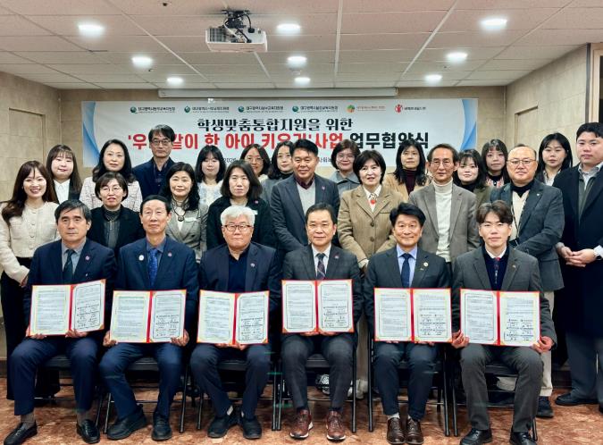 [뉴스앤톡] 대구 4개 교육지원청(동부·서부·남부·달성)은 2월 9일 오전 10시, 대구광역시사회복지관협회, 세이브더칠드런 동부지역본부와 함께 학생맞춤통합지원을 위한‘우리 같이 한 아이 키우기’ 사업 추진을 위한 업무협약을 체결한다.