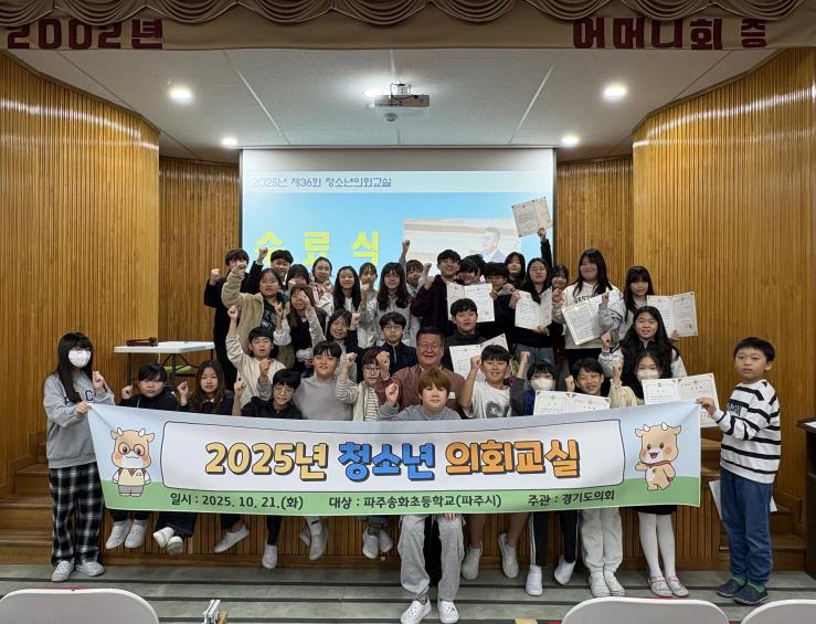 청소년의회교실은 경기도의회가 주관하고, 송화초등학교가 협력하여 진행한 프로그램으로, 이날 행사에는 안명규 의원을 비롯해 송화초등학교 5학년 학생 43명이 참여했다. 프로그램은 ▲의회 역할과 기능 소개, ▲조례안 처리 모의의회, ▲OX퀴즈, ▲수료식 등으로 구성됐으며, 학생들은 직접 의원이 되어 자유발언·찬반토론·표결을 체험하면서 ‘의회가 하는 일’을 몸소 배우는 시간을 가졌다.