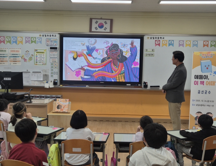[뉴스앤톡] 박범인 금산군수는 지난 24일 남일초를 방문해 학생들과 함께 그림책 읽는 시간을 가졌다.