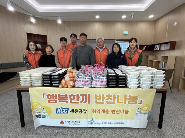 윤석헌 케이씨씨세종공장장은 “준비한 반찬들이 겨울철 추위에 취약한 어르신들에게 작게나마 힘이 되길 바란다”며 “지역사회에 따뜻한 온정이 전해질 수 있도록 지속적인 나눔을 실천하겠다”고 말했다.
