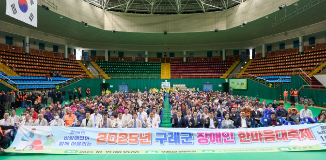 [뉴스앤톡] 전남 구례군은 지난 21일 오전 구례실내체육관에서 ‘2025년 구례군 장애인 한마음대축제’를 성황리에 개최했다.