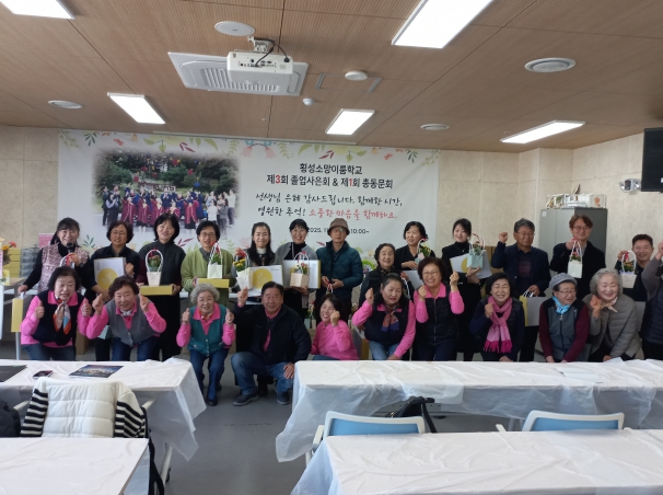 [뉴스앤톡] 횡성군은 성인 문해 학습장인 횡성소망이룸학교의 제3회 졸업사은회 및 제1회 총동문회를 28일 평생학습관 5층 다목적강당에서 개최했다.