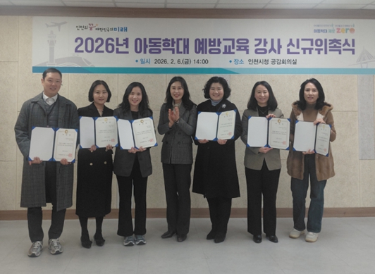 [뉴스앤톡] 인천광역시는 지난 2월 6일 시청 회의실에서 아동학대 예방교육 신규 강사 6명을 대상으로 위촉식을 개최하고, 전문성 강화를 위한 역량강화 교육을 실시했다고 밝혔다.