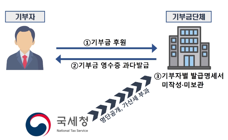 | ▲ 실제 기부금 수령액보다 많은 금액으로 거짓 기부금영수증 발급 사례 |