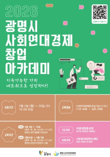 [뉴스앤톡] 광명시가 ‘2026년 광명시 사회연대경제 창업 아카데미’ 수강생을 오는 25일까지 모집한다.