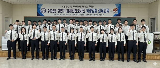 [뉴스앤톡] 전북특별자치도소방본부는 지난 4일부터 6일까지 3일간 한국소방안전원 전북지부에서 소방시설에 대한 전문적인 점검 역량과 조작능력을 높여 화재위험요인을 선제적으로 차단하기 위한 신규 화재안전조사자 실무교육을 실시한다고 밝혔다.