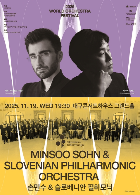[뉴스앤톡] 대구콘서트하우스는 월드오케스트라페스티벌의 일환으로 ‘손민수 · 슬로베니안 필하모닉’ 공연을 11월 19일 오후 7시 30분 그랜드홀에서 개최한다.