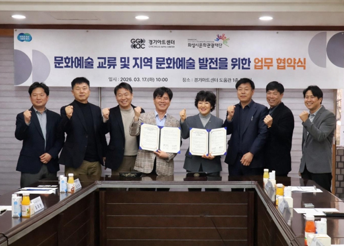 [뉴스앤톡] 화성시문화관광재단은 3월 17일 경기아트센터에서 경기 아트센터와 문화예술 교류 및 협력 강화를 위한 업무협약(MOU)을체결했다. 이번 협약은 양 기관이 문화예술 분야에서 상호 협력을 강화하고 지역 문화예술 발전과 시민들의 문화 향유 기회 확대를 위해 추진됐다. 양 기관은 상호 협력을 바탕으로 공연과 문화예술 프로그램을 공동 기획하고 다양한 문화예술 콘텐츠 교류를 통해 지역 문화예술 활성화를 도모할 계획이다.