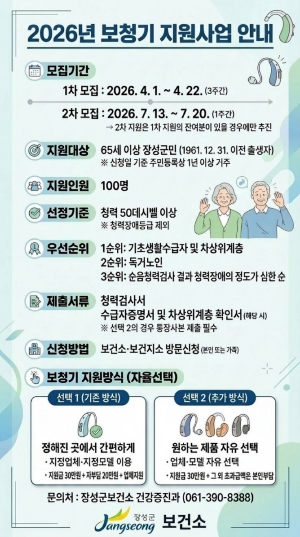 [뉴스앤톡] 장성군이 올해부터 어르신 보청기 지원사업에 ‘선택형 지원 방식’을 도입한다.