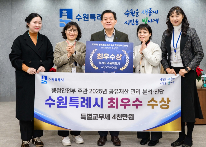 [뉴스앤톡] 수원특례시가 행정안전부 주관 ‘2025년 공유재산 관리 분석·진단 평가’에서 최우수 지자체로 선정돼 특별교부세 4000만 원을 확보했다. 시상식은 22일 정부서울청사에서 열렸다.