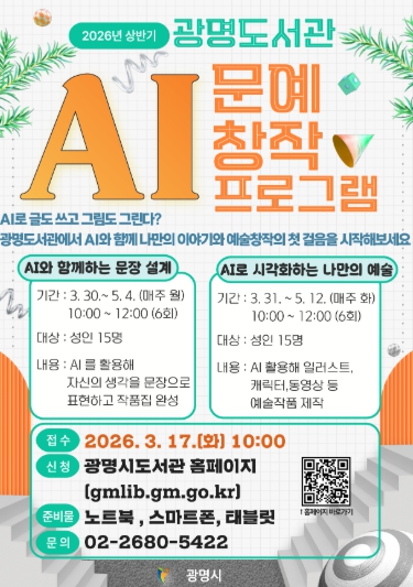 서준희 광명도서관장은 “AI 기술이 일상 속 창작의 새로운 도구로 자리 잡고 있는 만큼, 이번 사업으로 시민들이 도서관에서 쉽고 재미있게 AI 창작을 경험하길 기대한다”며 “앞으로도 도서관이 지식과 기술, 문화가 결합된 창의적 문화 플랫폼으로서 역할을 확대하겠다”고 밝혔다.